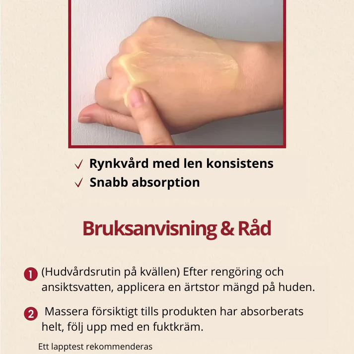 Stimulerar kollagen, minskar rynkor och förbättrar hudens fasthet.